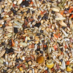 Składniki: nasiona trawy kanaryjskiej, proso la plata, rzepak, łuskany owies, siemię lniane, marchew 4%, proso japońskie, nasiona konopi, jagody bzu czarnego, nasiona traw, proso senegalskie, łuskany sezam, nasiona kopru włoskiego 1,5%, amarantus, nasiona maku, płatki rumianku 1%, nasiona muszli, muszle ostryg 0,6%