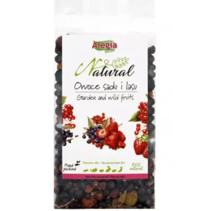 Alegia Owoce sadu i lasu 90g jest mieszanką suszonych owoców, znajdziemy w niej takie owoce jak: owoc jarzębiny, aronii, porzeczki, truskawki oraz dziką różę. Mieszanka zawiera naturalne witaminy w tym witaminę C, A, E, P oraz substancję mineralne niezbędne do prawidłowego funkcjonowania organizmu. Idealnie wkomponuję się w dietę Twojego pupila, a duża zawartość witaminy C jest szczególnie wskazana w diecie Kawii domowej. Dzika róża zawarta w mieszance wzmacnia odporność organizmy oraz łagodzi objawy nieżytów przewodu pokarmowego. Suszone owoce zawierają naturalne cukry z tego też względu nie należy ich podawać koszatniczkom.