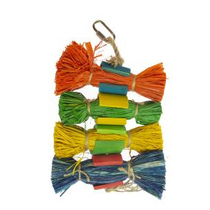 Ptaki uwielbiają kolorowe zabawki. Ta zabawka duvoplus wykonana jest z rafii i bambusa i jest świetną zabawką do zabawy lub skubania. Zapewni Twojemu ptakowi aktywność. Zabawka jest odpowiednia dla wszystkich gatunków ptaków.