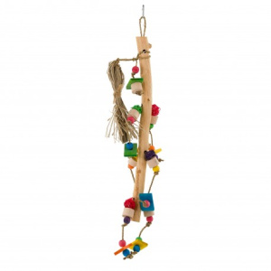Zabawka dla ptaków to wisząca konstrukcja o imponujących wymiarach - 65 x 10 cm.