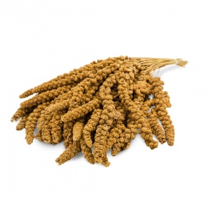 Suszone i smaczne żółte proso jest mile widzianą odmianą w ptasim domu i można je powiesić w dowolnym miejscu. Ptaki uwielbiają wybierać pojedyncze ziarna z pęczka i są zajęte w naturalny i znaczący sposób. Proso żółte jest bogate w beta-karoten, żelazo, magnez, krzem i różne witaminy. Te naturalne i zdrowe składniki wspomagają witalność ptaków domowych i mają wzmacniający wpływ na skórę i upierzenie. Proso zwyczajne to niezwykle popularna przekąska dla ptaków, idealna do karmienia z ręki, co ułatwia oswajanie ptaków.